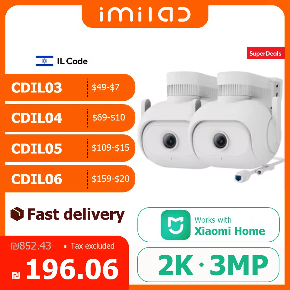 오리지널 IMILAB 2K 플러그인 투광등 스마트 WiFi 보안 카메라 실외 방수 IP66