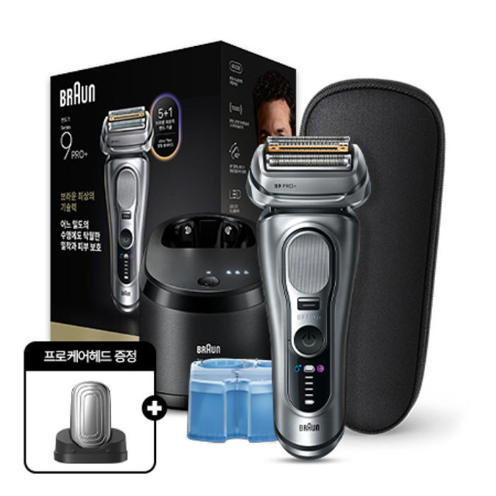 [BRUAN] 브라운 전기면도기 시리즈 9 PRO 세척&충전스테이션+프로케어헤드 구성(크롬)