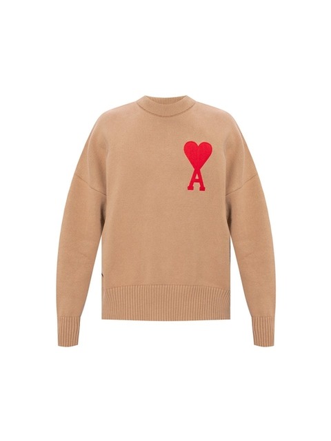 아미 빅 하트 로고 자수 니트 베이지 E21HK009 016 250