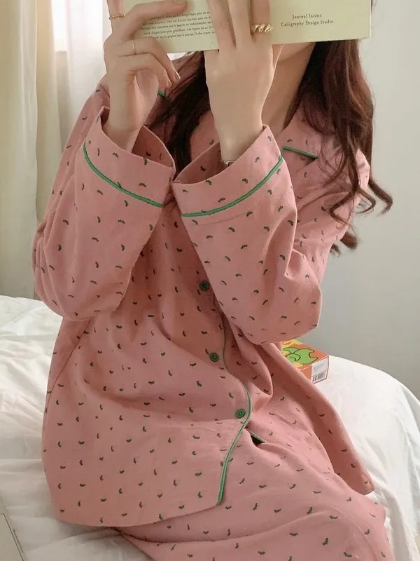 여성용 부드러운 긴팔 파자마 세트 가을 봄 시즌 라운드넥 편안한 홈웨어 잠옷