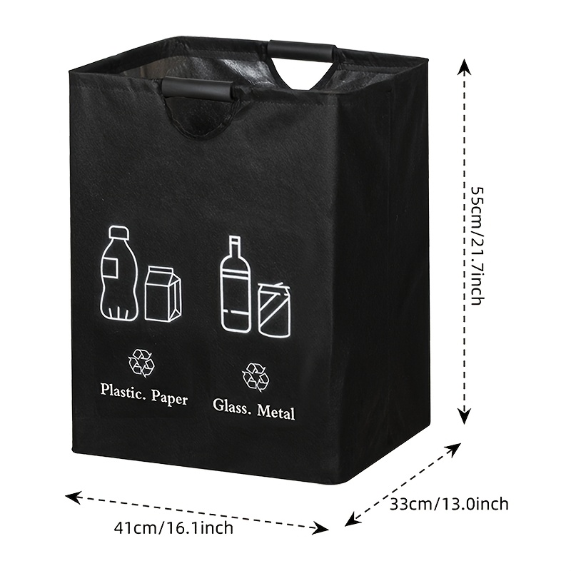 TEMU 스펀지 EVA 손잡이가 있는 80L 대용량 강화 분류 휴지통; 접이식 수납백, 병 60개 수납; 내구성 있는 폴리에스터 소재, 주방, 가정, 사무실 쓰레기 정리용으로 적합. 고품질 내구성 소재: 두꺼운 폴리에스터 섬유 원단으로 제작, 찢어짐 및 마모에 강하며 닦기 쉬워 장기간 사용에 적합