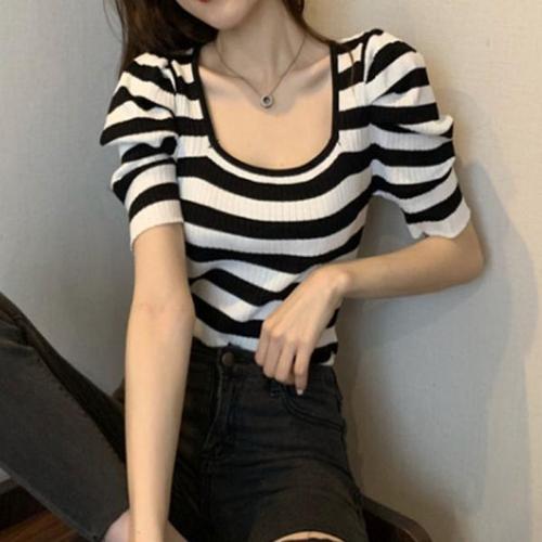 [오너클랜]인기상품 여성 퍼프 스퀘어넥 골지 반팔 니트 여름 티셔츠 [WD18BAC_250917]