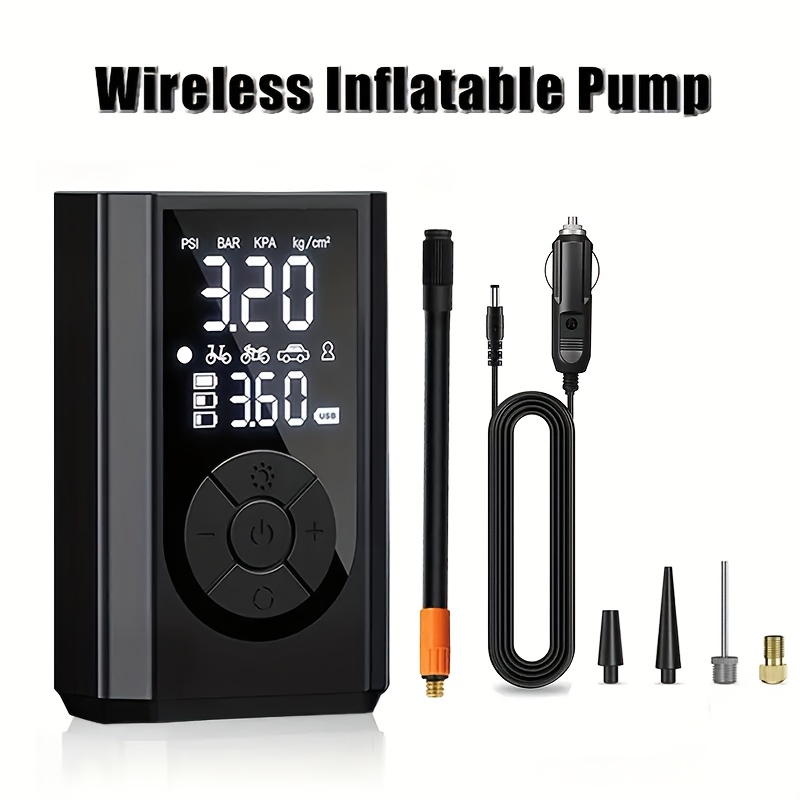 TEMU 무선 전기 공기 펌프, 디지털 압력 게이지 및 LED 라이트 포함, 이중 전원 모드, 2.64갤런 배터리, 자동차, , 자전거, 공 등을 위한 컴팩트한 ABS 디자인 | 현대적인 디자인