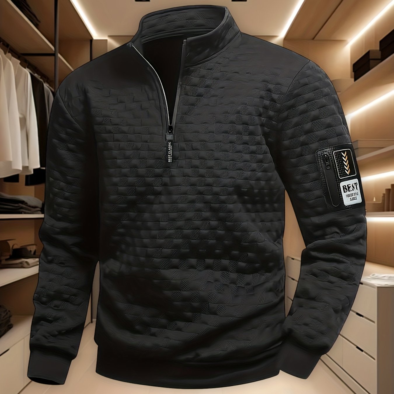 TEMU 남성 솔리드 컬러 집업 칼라 풀오버 스웨터, 가을/겨울 캐주얼 출퇴근에 적합