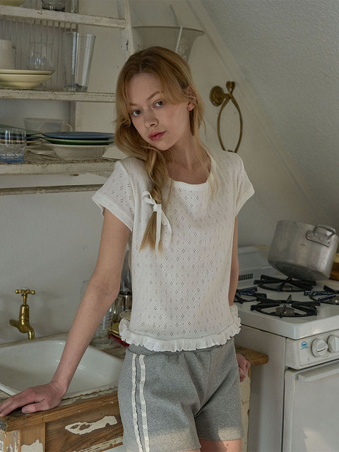 [오오엠엘] 아일렛 프릴 니트 (화이트)