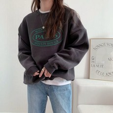여성 티셔츠 기모 추가 내추럴 루즈핏 레터링 데일리 맨투맨