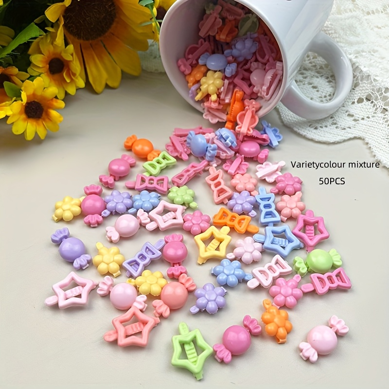 TEMU 마카롱 색상의 귀여운 꽃과 별 머리핀 50개 세트, 개구리 걸쇠 디자인, 헤어스타일링에 완벽