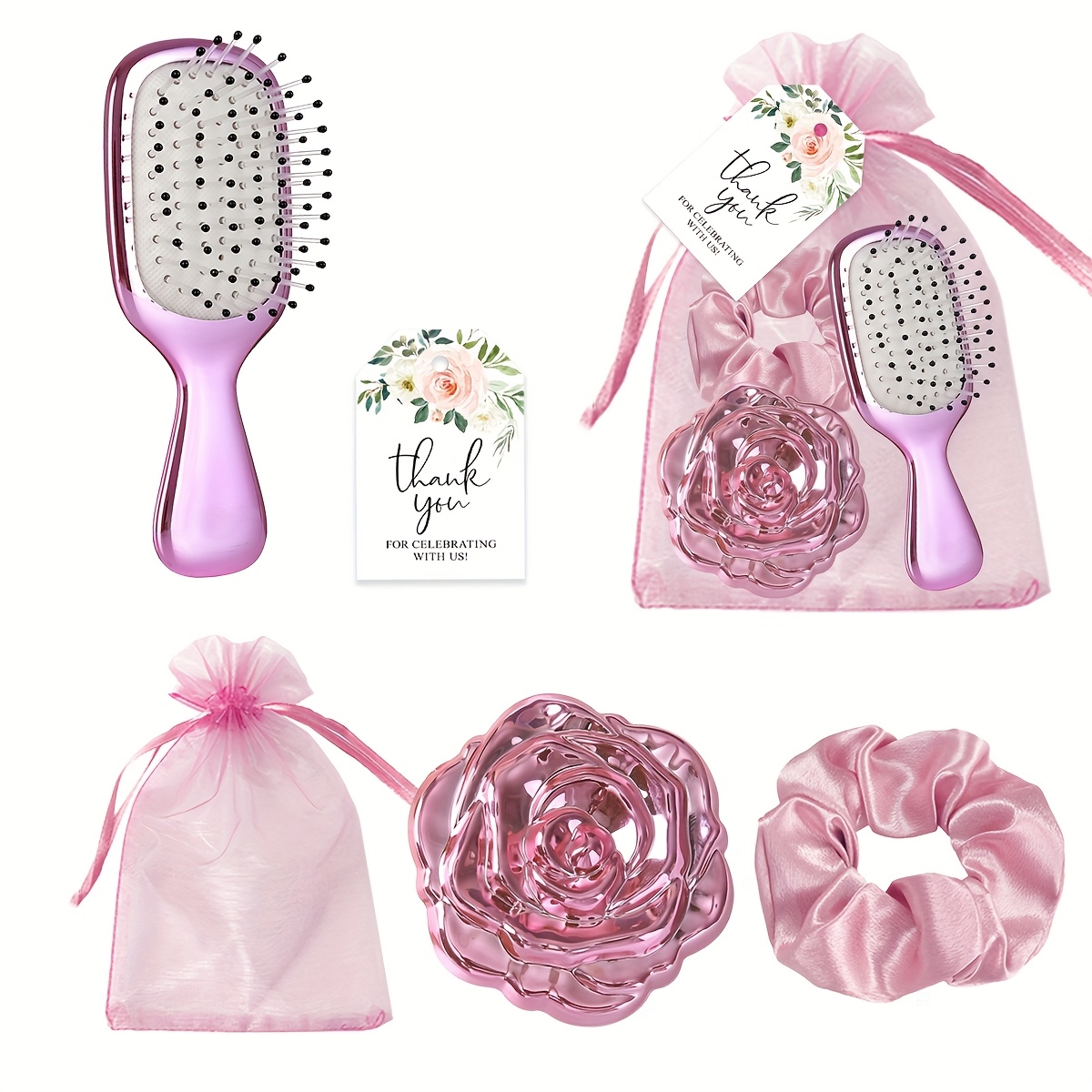 TEMU 5-피스/30-피스 선물 세트: 전기도금 장미 플립탑 휴대용 접이식 거울, 스퀘어 미니 빗, 머리끈, 감사 카드, 끈 달린 선물 가방 – 크리스마스, 할로윈, 결혼식, 파티, 생일, 축하 행사에 이상적