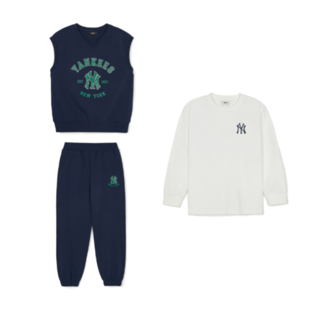 M MLB키즈트레이닝세트 TQK 7AS2VA246-50NYD 바시티 스포츠 기모 테리 맨투맨세트 뉴욕양키스