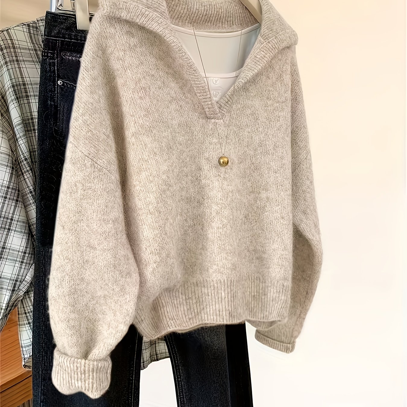 TEMU 여성용 우아한 V넥 스웨터 | 편안한 드롭 숄더, 긴소매, 단색, 가을/겨울에 이상적