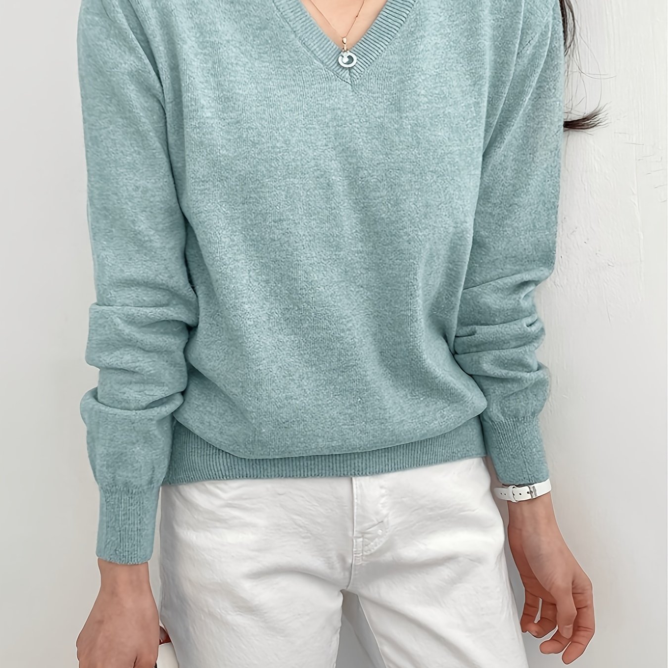 TEMU 여성용 솔리드 V넥 캐주얼 비즈니스 스웨터, 가을 겨울용 긴팔 탑