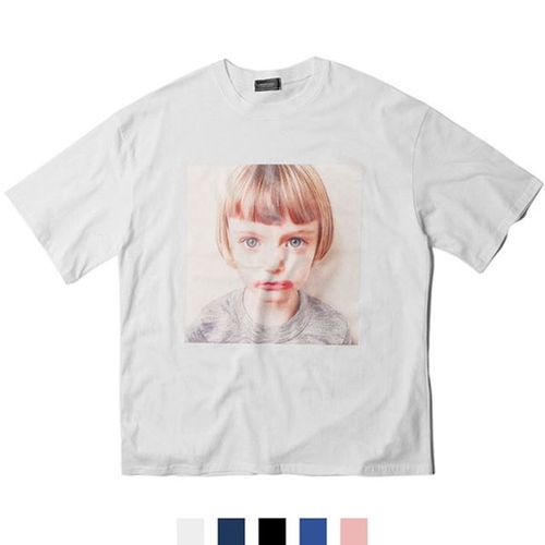 KING 남녀공용 울보아기 프린트 반팔티셔츠 WFKMXHT