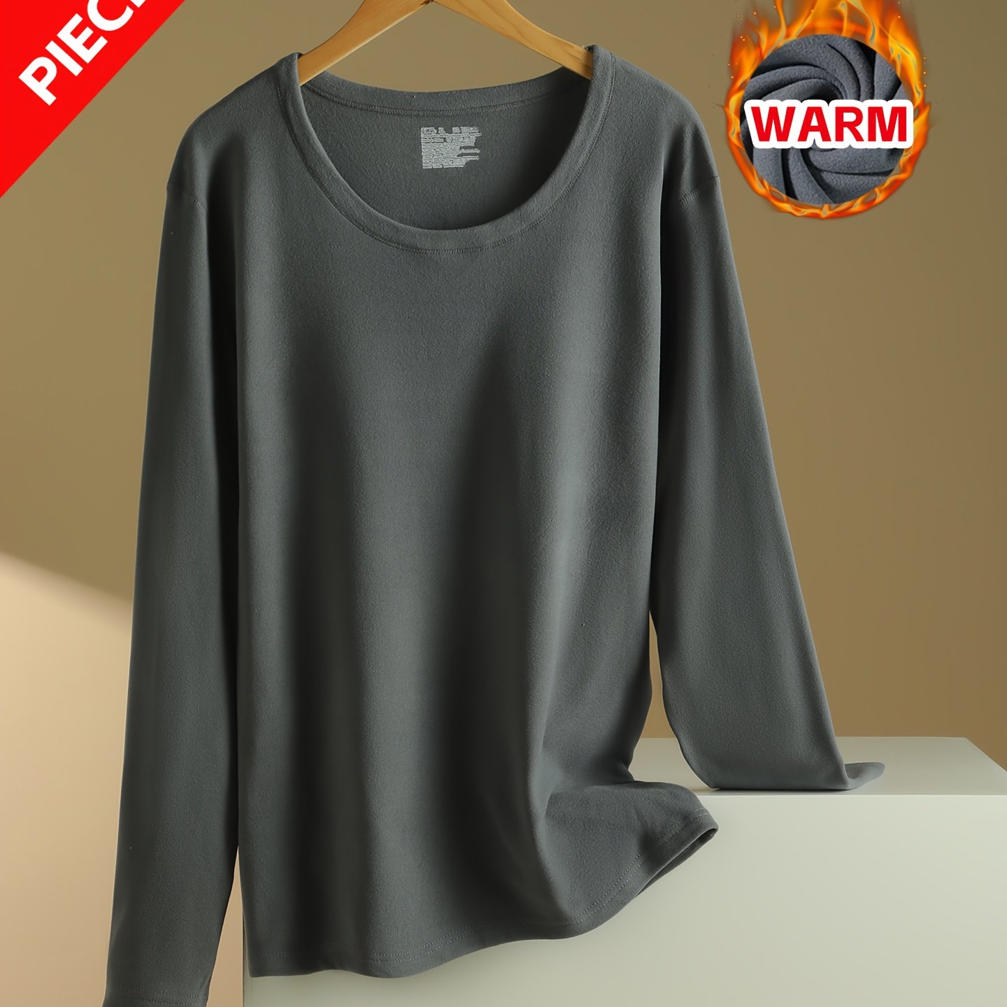 TEMU 남성용 가을/겨울용 보온 속옷 상의, 라운드넥의 핏되는 베이스 레이어, 블랙, 화이트, 그레이 색상으로 제공.