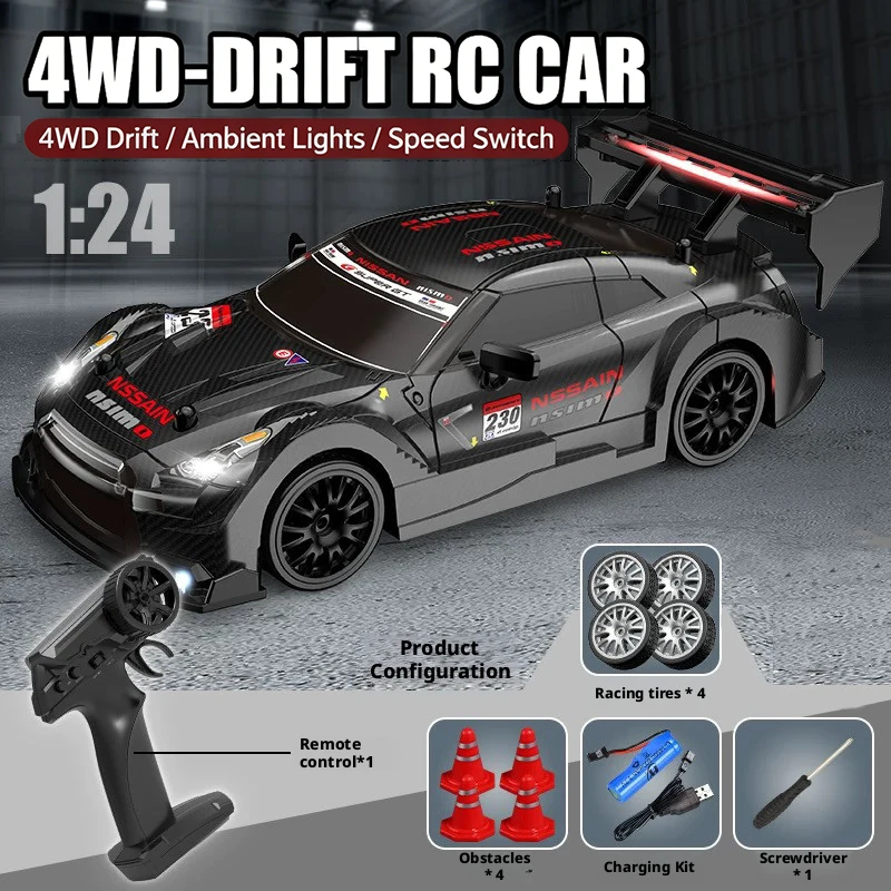 새로운 4륜구동 무선 조종 드리프트 자동차 풀 사이즈 1:24 미니 무선 조종 레이싱 자동차 모델 2.4G 무선 고속 RC 자동차 남자아이 장난감 선물