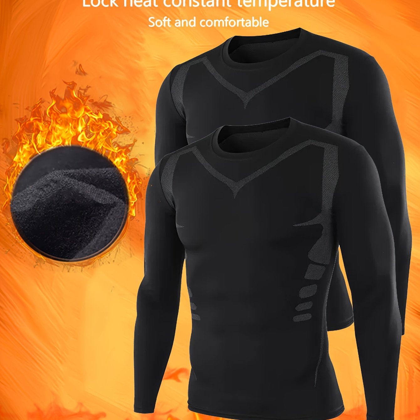 TEMU 남성용 보온 플리스 안감 긴팔 압박 스포츠 탑 2개 세트 - 스키, 러닝, 하이킹, 사이클링 및 체육관용 - 가을 및 겨울용