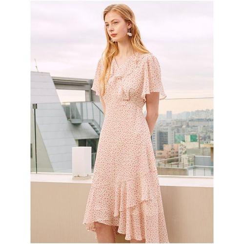 SOUP 여성 브이넥 허리 셔링 플라워 프린트 원피스 OB5OPTL