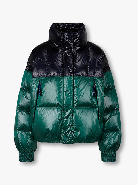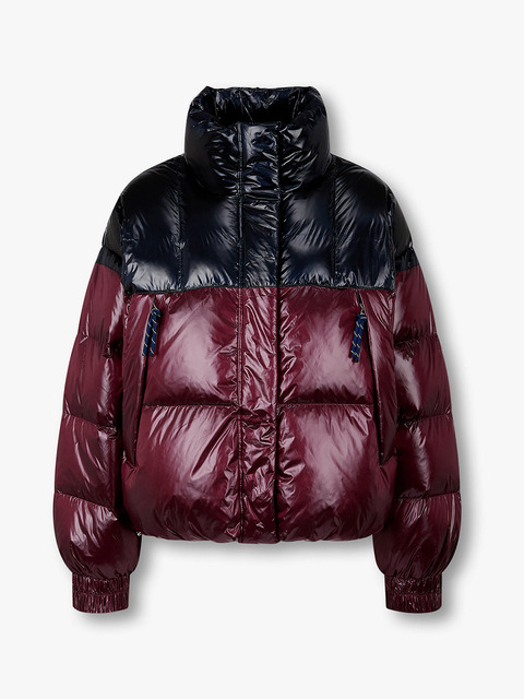 큐브 배색 덕다운 여성 숏패딩