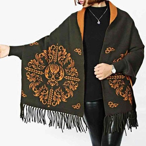 TEMU 플러스 사이즈, 새로운 젠틀 중국 스타일 퀼팅 도톰한 망토, 중국식 숄, 망토 로브, 다용도 가을/겨울용 트리밍 아우터웨어, 보온용