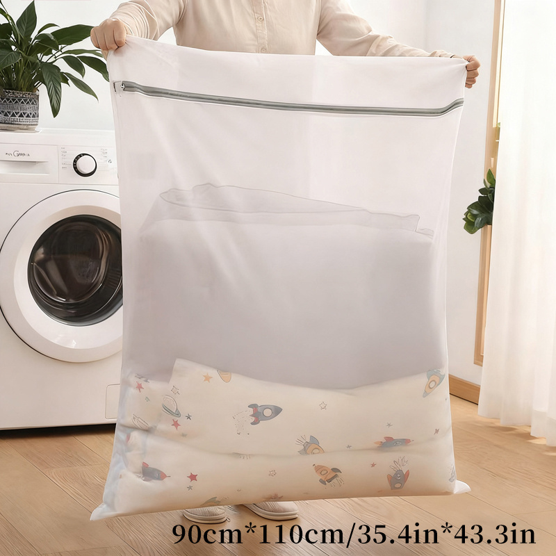 TEMU 1개 대형 내구성 메쉬 세탁망 지퍼 포함 - 섬세한 의류, 커튼, 이불, 다운 재킷 보호용, 변형 방지 직사각형 세탁망, 담요, 스웨터, 여행 및 가정 정리용, 폴리에스터, 세탁 액세서리, 통기성 원단, 튼튼한 구조, 의류 보호, 자주 여행하는 사람들에게 필수, 세탁망, 세탁망 세트