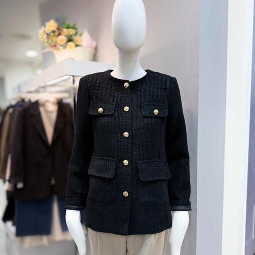 [더틸버리]금장버튼 라운드넥 트위드 재킷 MTS2N0JK521_DG