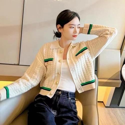 [주식회사 브이와이][JHQRJFPQ_4B]예쁜 배색 라운드니트 라인 살짝 크롭 가디건 (24053788A)