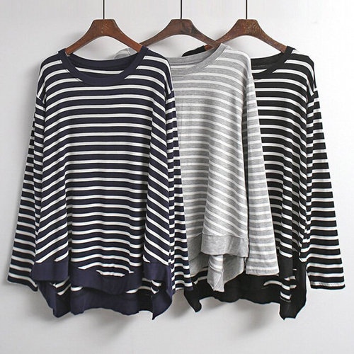 나야홍 / 빅사이즈단가라티 V130L508 언발컷스트라이프티셔츠 Y