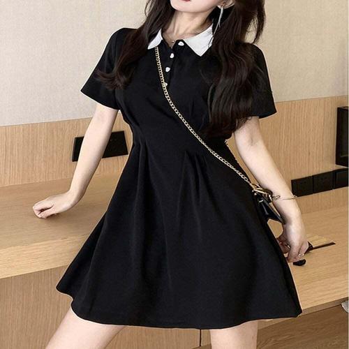 [셀러허브_여성트랜드패션]ONM 여성 A라인 반팔 카라 원피스 블랙 여름 하객룩