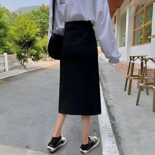 [에이치플러스몰]유즈 여성 데일리 A라인 트임 클래식 미디 여름 스커