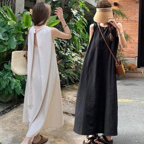 [에이치플러스몰]여름 인기 여성 홀터넥 뒷트임 감성 A라인 민소매 롱