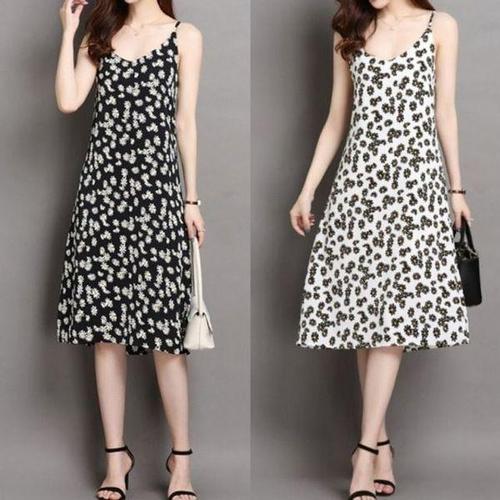 [에이치플러스몰]예쁜 플라워 데일리 끈나시 무늬 클래식 A라인 여친룩
