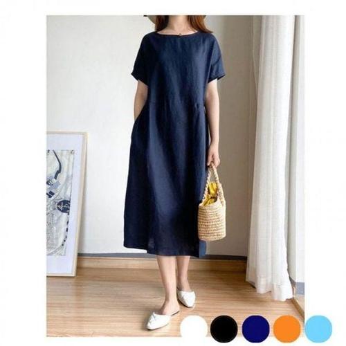 [에이치플러스몰]여성 여름 데일리 A라인 캐주얼 클래식 린넨 허리밴딩