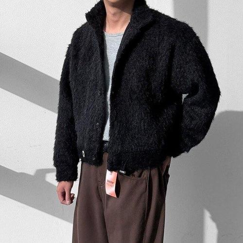 [피팅남]남자 보우 겨울 알파카 하이넥 크롭 부클 자켓