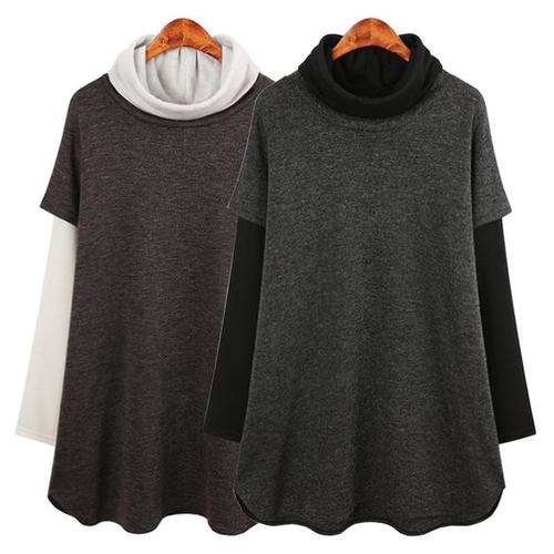 [허밍퍼플]여성용 2374-LB 이중 배색 롱 터들 빅사이즈 겨울 따뜻한 폴라 배색 니트 폴러 여성의류