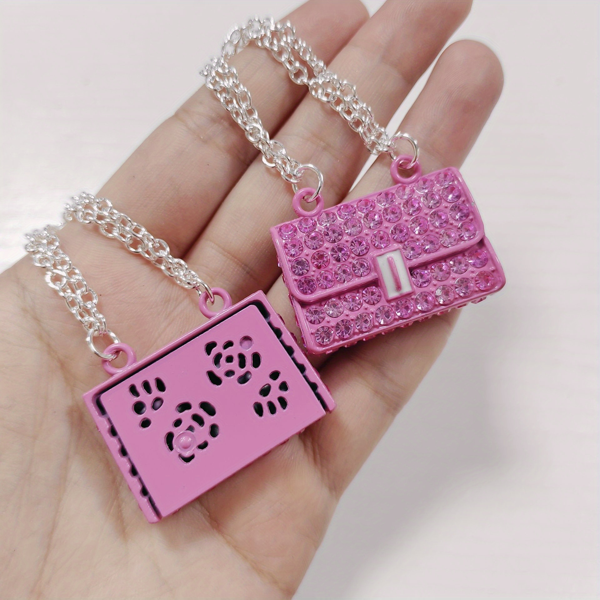 TEMU 벌크 공급 2개 신상품 달콤하고 시원한 다크 블랙 로즈 레드 체인 백 풀 라인스톤 장식 지갑 DIY 인형 시뮬레이션 핸드백 주얼리 액세서리 잡동사니 폰 케이스 메이크업 거울 장식 수공예 참