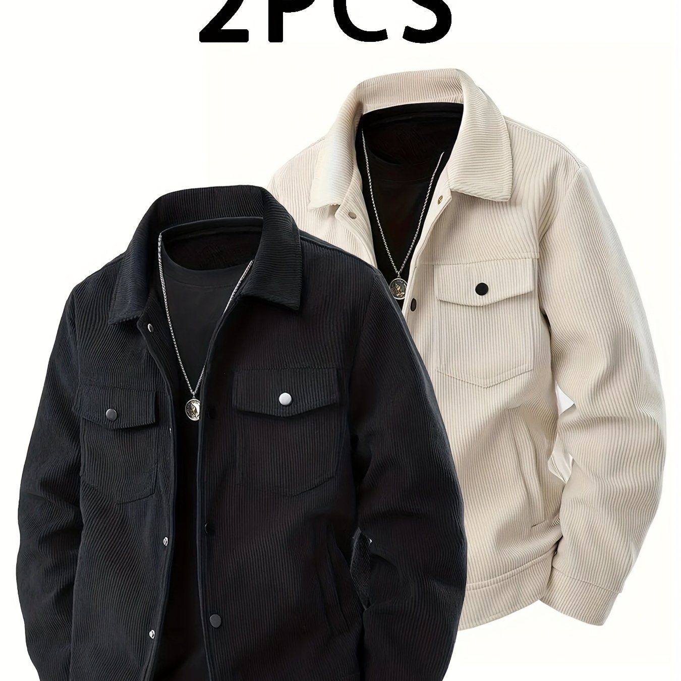 TEMU 2025년 신상 코듀로이 재킷 2벌 세트, 높은 미적 감각과 고품질, 패셔너블하고 활용도 높은 제품, 고급스러운 부드러운 원단
