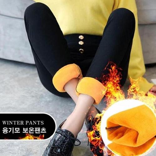 [HYIK0ETY_4B]따뜻한 융기모바지 융털 밴딩 연필 여자 팬츠