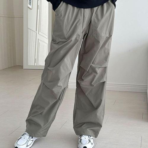 여자 밑단 스트링 캐주얼 팬츠 와이드 조거핏 바지 WCA770B