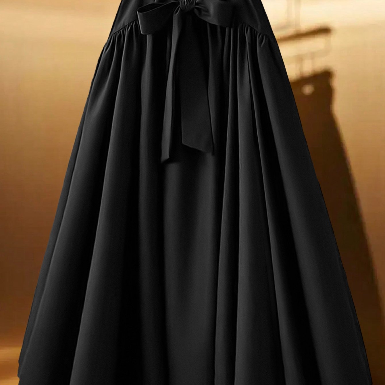 TEMU 플러스 사이즈 - 플러스 사이즈 - 플러스 사이즈 - 플러스 사이즈 - 여성용 우아한 플레어 맥시 스커트, 보우 타이 허리 - 신축성 없는 포멀 & 데일리 롱 드레스, 플로이 A라인 실루엣, 모든 계절에 사용 가능한 세탁기 사용 가능 - 오피스, 파티, 캐주얼 의상, 오피스룩