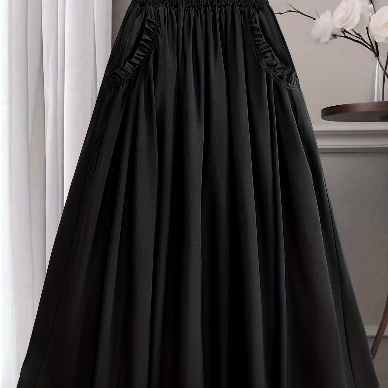 TEMU 여성용 하이웨이스트 A라인 스커트 - 매력적인 핏, 신축성 허리밴드, 가볍고 통기성 좋은 봄/여름 캐주얼 & 드레스룩 - 일상 및 정장용, 소녀 친화적 스커트, 러플 밑단, 편안한 착용감, 스프링 워드로브, 세련된 디자인, 부드러운 원단, 패션 애호가를 위한 여름 패션