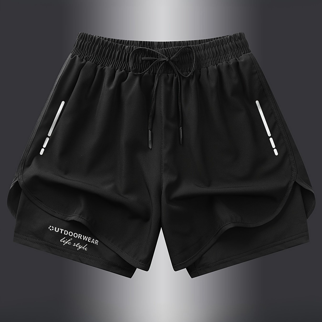 TEMU 3피스 남성 캐주얼 단색 패션 프린트 2-In-1 패션 트레이닝 스포츠 속건 드로스트링 반바지