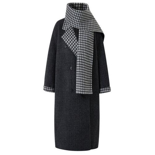 [BNX]울 블렌드 카라 배색 체크 머플러 세트 롱 코트 (BX4CT001L0)