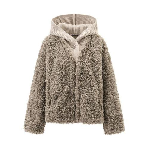 [BNX]소프트 니트 후드 레이어드 양털 자켓 (BX4JK023L0)