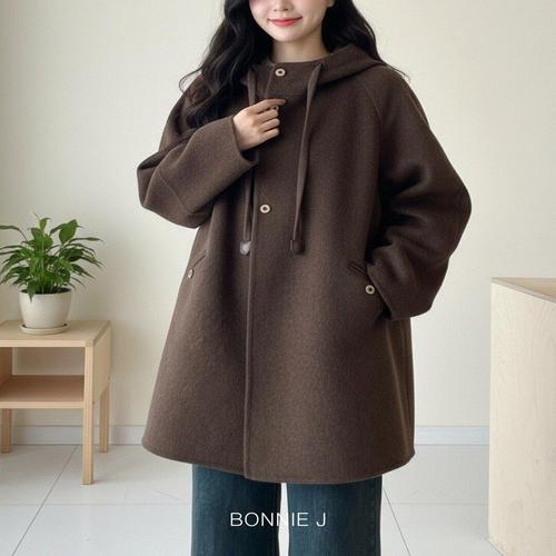 [보니제이]BONNIE J 베이직 하프코트 빅사이즈 핸드메이드 울 코
