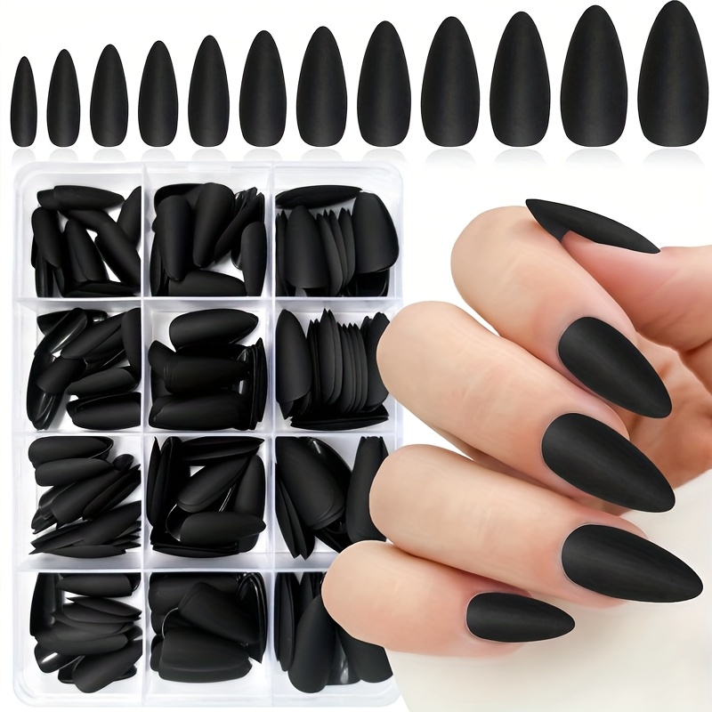 TEMU 매트 블랙 누네일 240개입 아몬드형 인조 손톱, 중간 기장 아몬드형 스틸레토 누네일, 여성용 두꺼운 내추럴 아크릴 젤 네일, 살롱급 품질