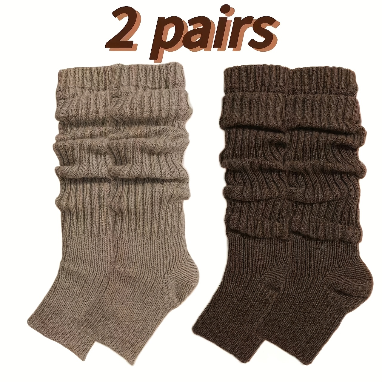 TEMU 여성용 레그워머 2켤레 - 따뜻한 겨울 다리 커버, 베이지에서 브라운 그라데이션, 우아한 앵클 디자인으로 부츠와 신발에 잘 어울리며, 편안한 가을/겨울 스타일 완성 - 고급스러운 여성 신발 액세서리