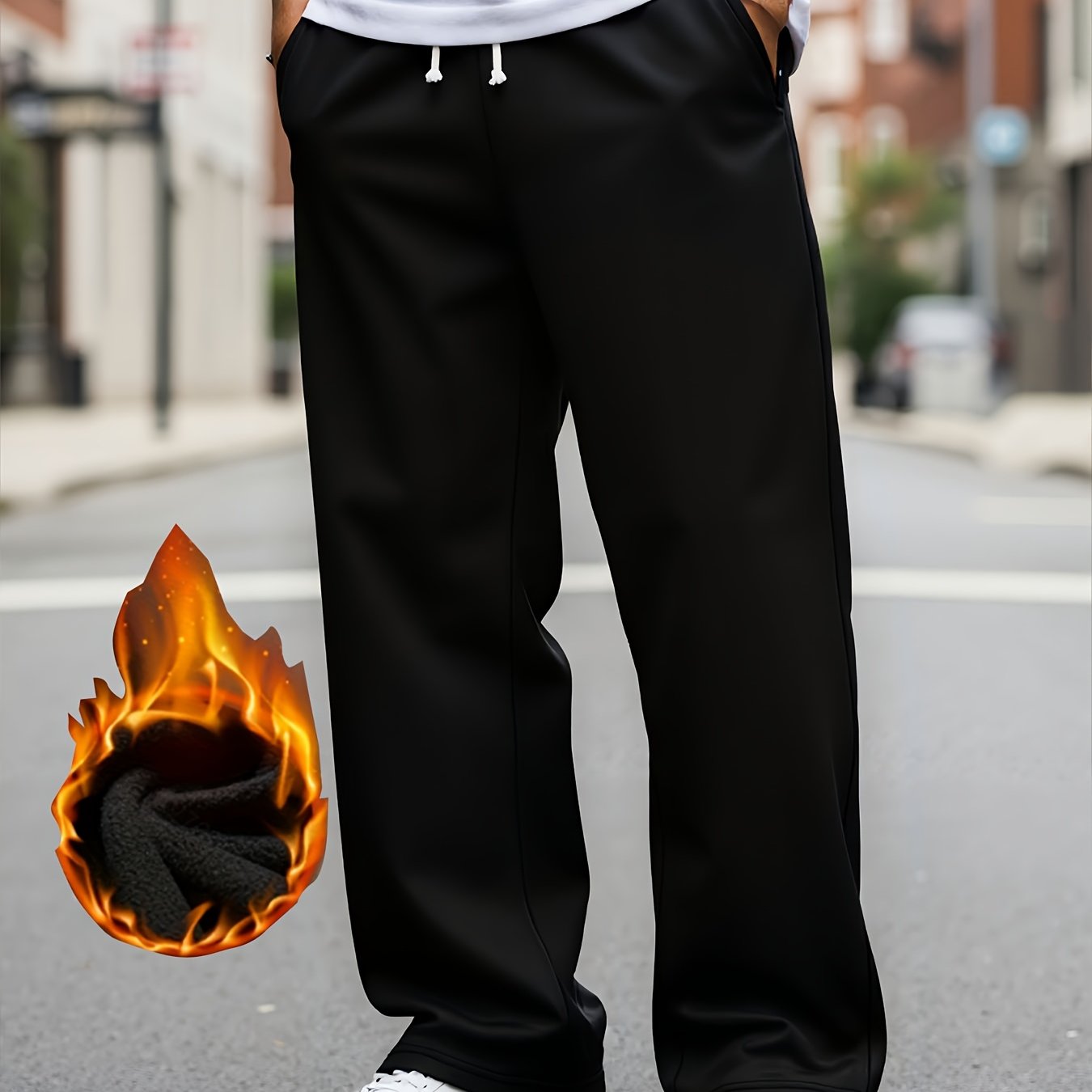 TEMU 남성용 보온 겨울 조거 팬츠, 두꺼운 원단 & 신축성 허리밴드/드로스트링 - 스트레이트룩 루즈핏 트레이닝 짐바지, 아웃도어, 데일리웨어용 - 기계 세탁 가능 보온 운동복