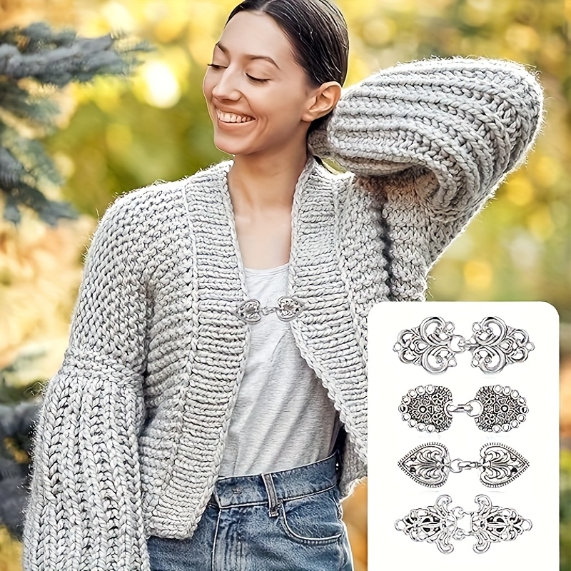 TEMU 4개 빈티지 스웨터 클립 - 은색 도금 기하학 패턴 가디건 숄 클립 (드레스, 셔츠, 스카프용) - 안정적인 고정, 인조 보석 없음, 캐주얼 & 포멀 웨어, 할로윈, 마르디 그라, 캠퍼스 행사
