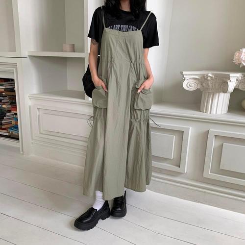 |CHO59D1|여성용 캐주얼 카고 스트랩 롱원피스 활동적인 데일리룩