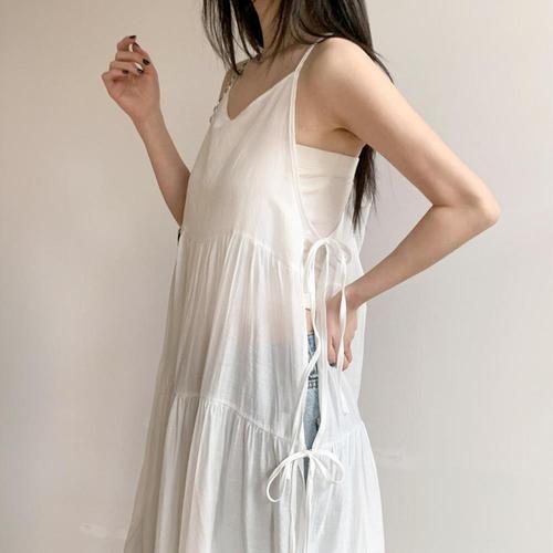 |CHO59D0|여성 루즈핏 시스루 끈 나시 캉캉 사이드 리본 드레스