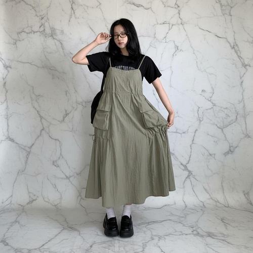 |CHO59D1|여성용 캐주얼 카고 스트랩 롱 드레스